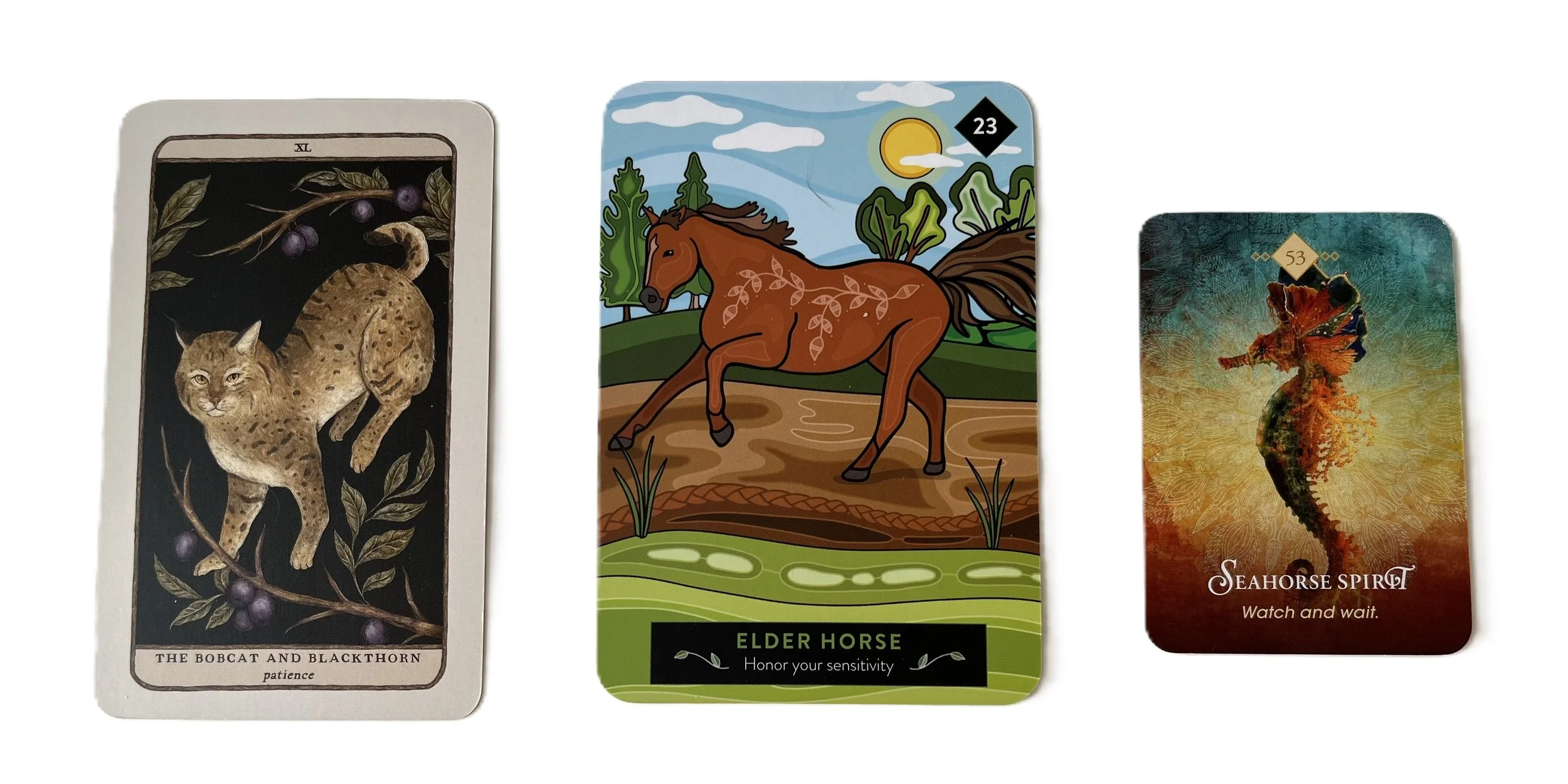 I pull a few oracle cards at the end, in a third row, for fun and further advice.