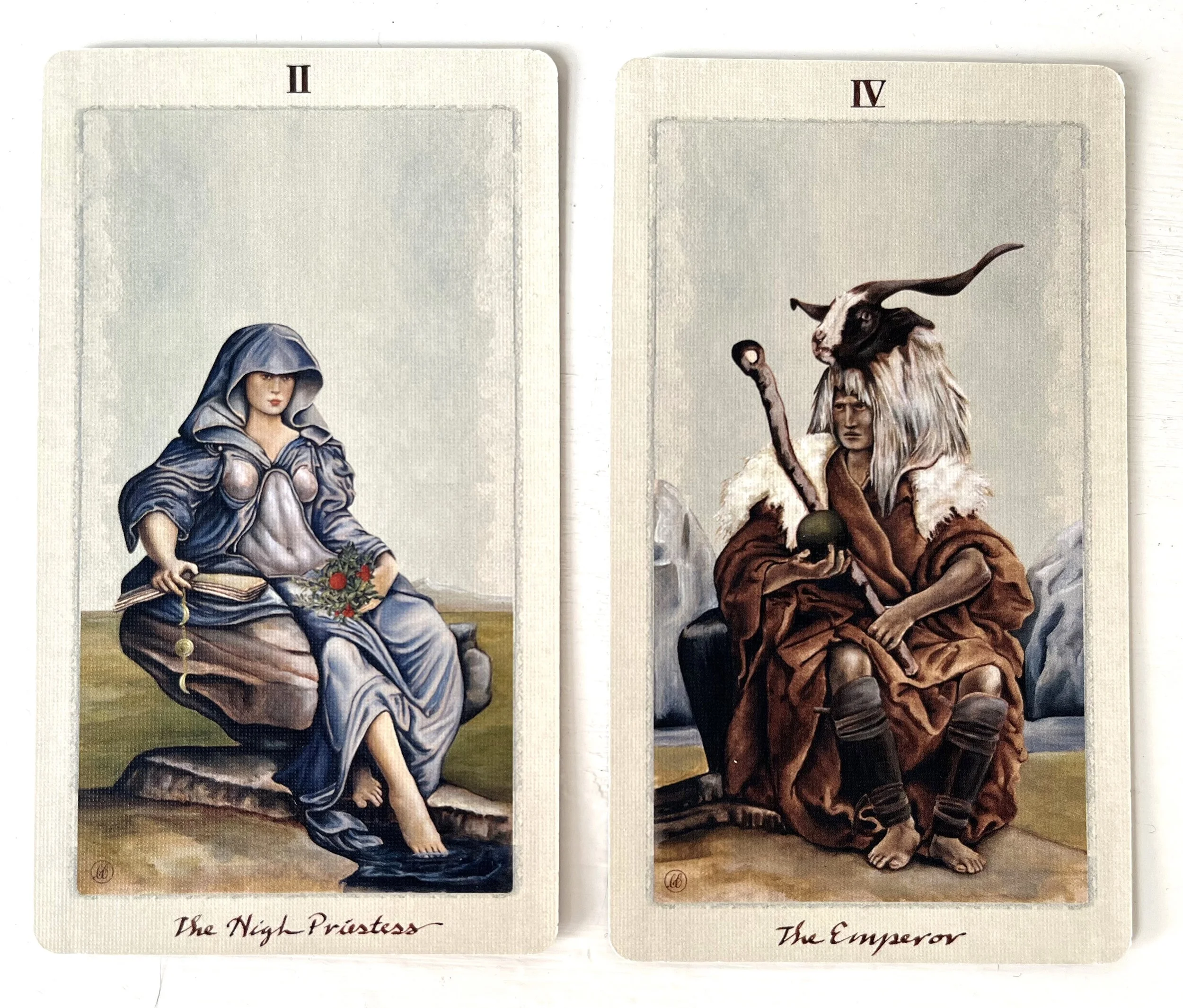 Or that these two figures could be MUCH more literal—if we decide that The High Priestess is me and The Emperor is my partner. In that case, we are two rather different (yet both powerful) figures and we both seem to command our own way (or the highway). True, true, true.