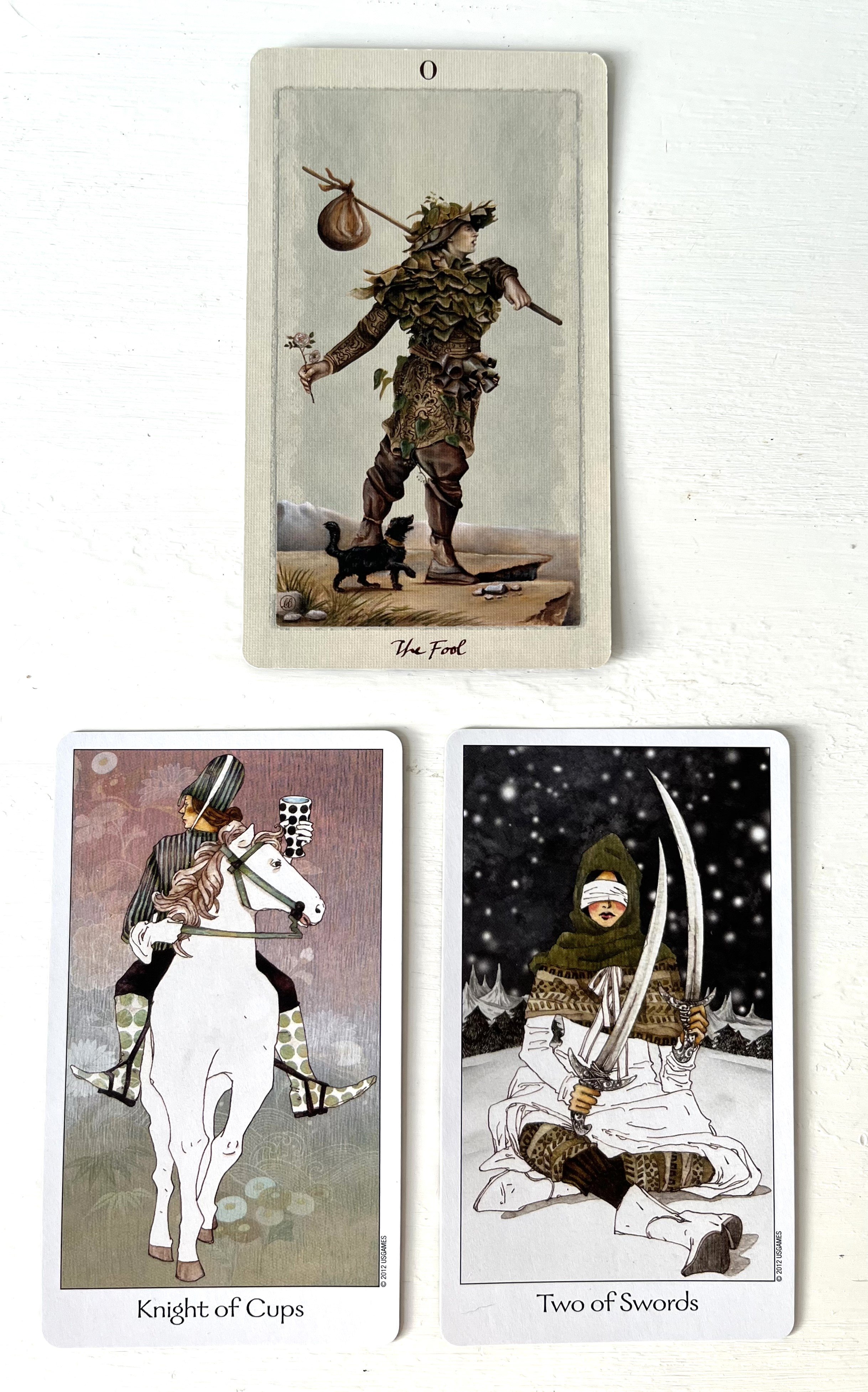 In the past, when things have gotten very sword-y (I’m thinking of issues I’ve had with my parents, which seem impossible to untangle) the advice position, invariably, gives me The Fool.