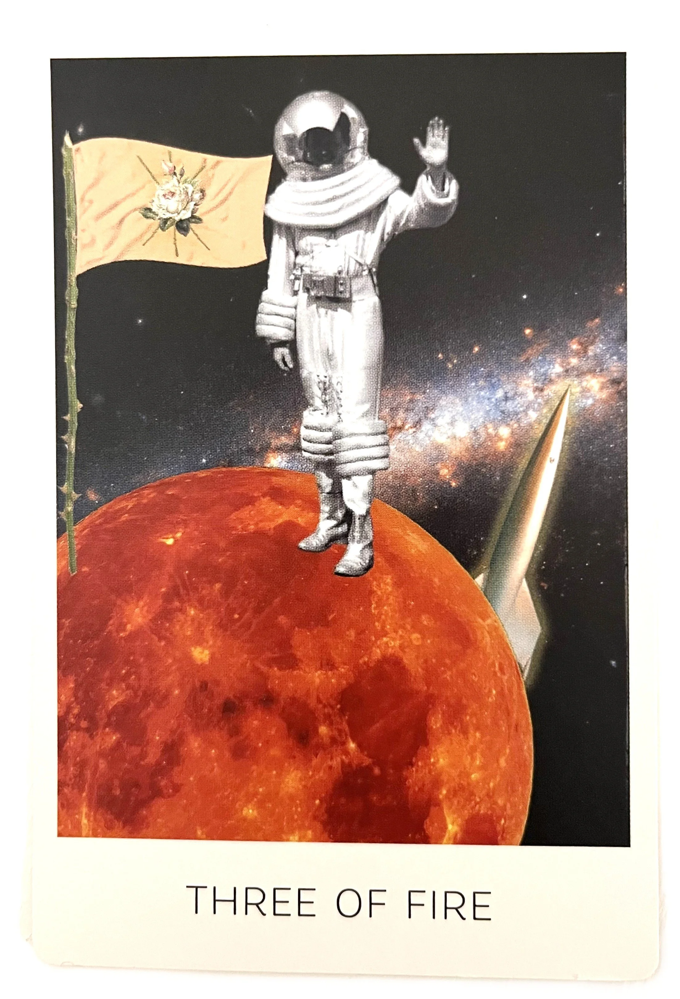 But the 3 of Wands is what comes after you’ve laid the groundwork and taken your first tentative steps. It’s next level. Ambitions have more clarity. You’ve left security behind and that’s why this dapper astronaut is in outer space, truly committed now and embracing the role of maverick on an entirely other planet.