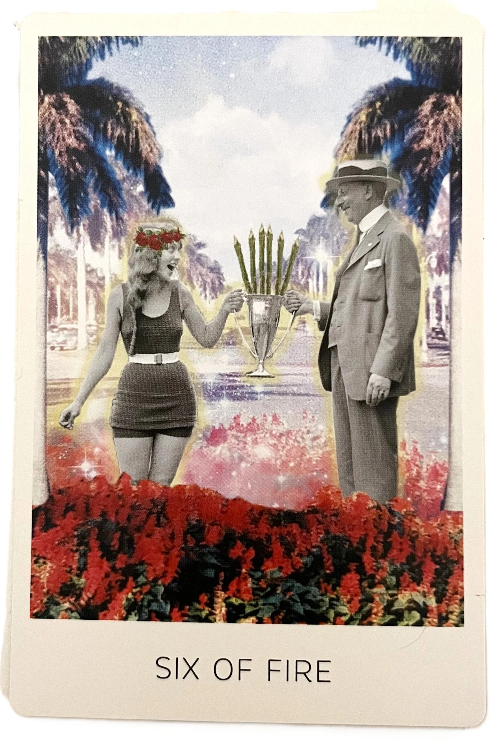 The 6 of Fire (which is the 6 of Wands) flags victory (!), so in the last half of June Magician energy is readily available to us (ie: when you find yourself riding the magic-train do not get over-analytical, or jump off at the first stop).